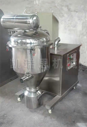 對(duì)于二維、三維、雙錐混合機(jī)、密閉料倉等抽真空容器,可以選用混合機(jī)用真空上料機(jī)。通過進(jìn)料三通等物氣分離裝置,對(duì)受料設(shè)備進(jìn)行抽真空設(shè)備說,物料在受料設(shè)備內(nèi)的真空作用下,從進(jìn)料口直接吸入受料設(shè)備。此種加料形式下,物料始終處于連續(xù)流動(dòng)的狀態(tài) ,上料穩(wěn)定、快速,故障率低。